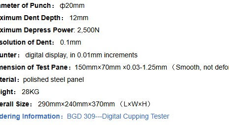 The BGD 309 stands out as a high‑accuracy, digitally enhanced cupping tester that delivers repeatable, standards‑aligned results. Its automatic coordinate positioning, precision sensor, and illuminated inspection system make it significantly more reliable than traditional manual cupping testers. With its robust construction and fine‑resolution measurement capability, the BGD 309 is ideal for laboratories and manufacturers who require dependable, quantifiable coating‑flexibility data.