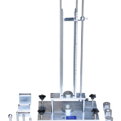 Impact height ranges from 50 mm to 500 mm, adjustable in 50 mm increments, enabling precise control over test severity.